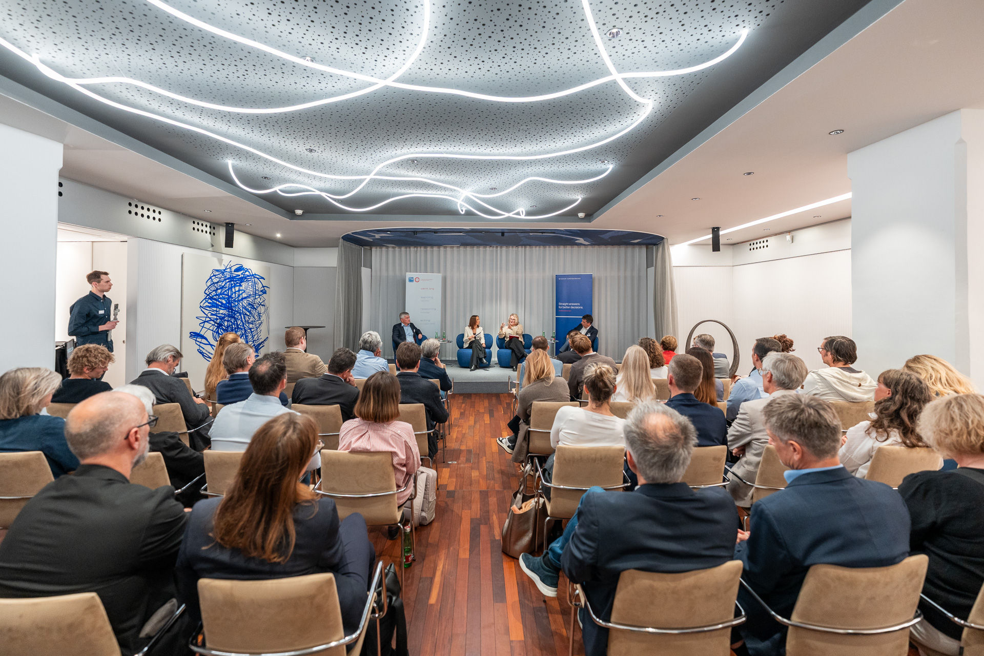 Fazit des Abends: Die Diskussion machte deutlich, dass Künstliche Intelligenz weit über technische Fragen hinausgeht – sie verändert Arbeit, Gesellschaft und Recht gleichermaßen. Die Herausforderungen reichen von rechtlichen Fragen, wie Haftung, Datenschutz und geistigem Eigentum über ethische Verantwortung bis hin zur Gestaltung einer menschzentrierten digitalen Transformation. Entscheidend wird sein, klare Leitlinien zu entwickeln, die Innovation fördern und zugleich grundlegende Werte schützen. Einigkeit herrschte darüber, dass KI nicht nur ein technologisches, sondern vor allem auch ein gesellschaftliches und ethisches Zukunftsthema ist – mit unmittelbarer Relevanz für Praxis, Politik, Recht und Forschung. Die Diskutanten zeigten sich zuversichtlich, dass Europa durch klare Rahmenbedingungen, hohe ethische Standards und gezielte Kompetenzförderung eine starke, verantwortungsvolle Position im globalen KI-Wettbewerb einnehmen kann.